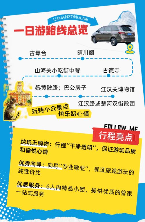 【2-6人小团】晴川阁+古琴台+古德寺+黎黄陂路·小众经典【睡饱再出发-纯玩2-6人小团,7座商务车出行 自有车队 全职司机向导出行 讲解当地趣事,融入当地生活】