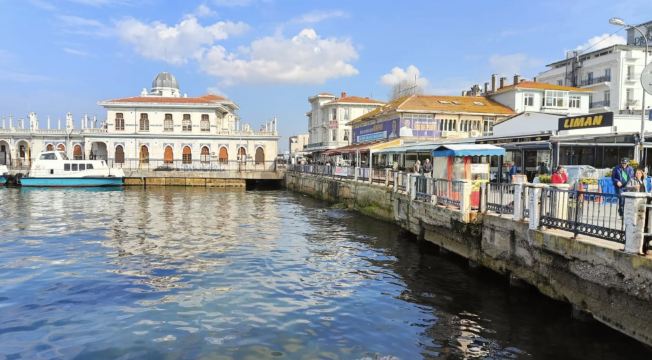 ▲ 从伊斯坦布尔王子群岛的海滨可以欣赏到历史建筑、咖啡馆以及岛屿海岸线上平静的海景。