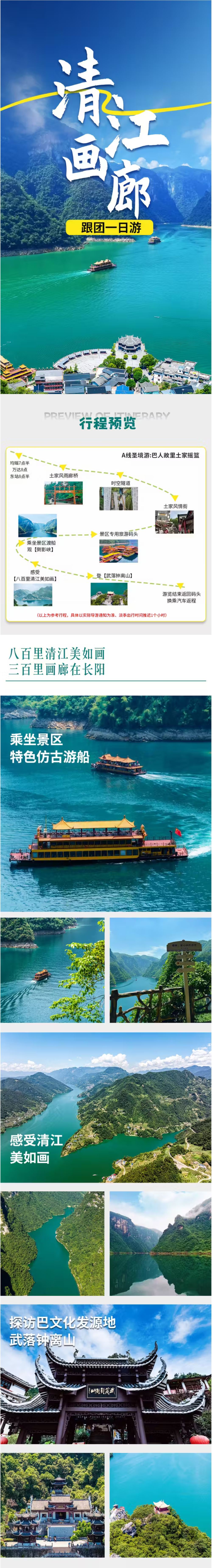 宜昌清江画廊一日跟团游【(A线)圣境游】【[山水秘境]乘仿古画航船行碧波上,人在画中游,登武落钟离山俯瞰清江,探访巴人发祥地的远古传说!】