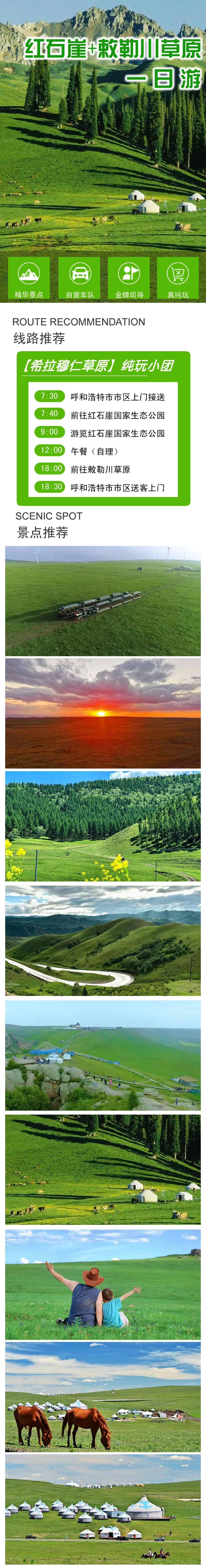 内蒙古红石崖+敕勒川草原一日游【上门接送丨2-8人团丨纯玩】【自营车队,全部出行汽车为旅行社自营,手续齐全,司机经验丰富】