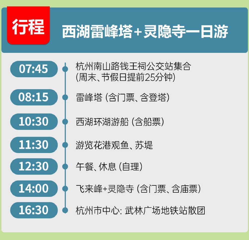 杭州西湖+雷峰塔+西湖游船+灵隐寺一日游【纯玩 资深讲解】【1.优选线路: 不紧不慢中游览杭州必打卡景点,看景不如听景,听导游娓娓道来杭州的历史文化。】