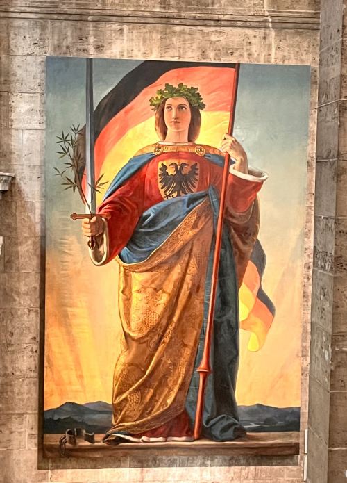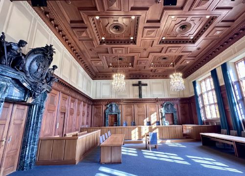 ▲ 正义宫--国际审判庭。纽伦堡审判(1945-1946)在此进行,开创国际战争犯罪审判