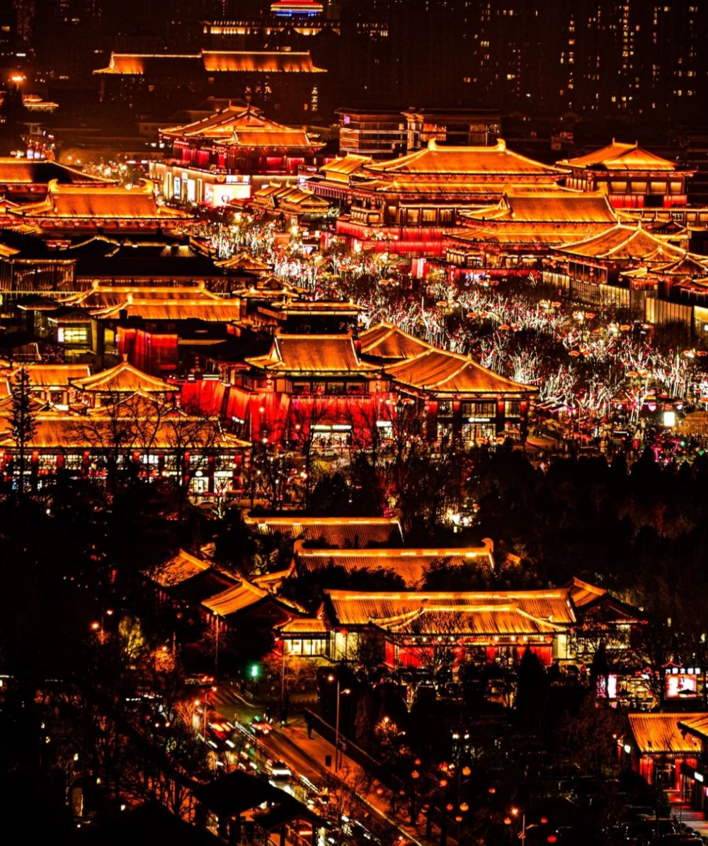 ▲ 灯火长明,岁岁安宁,长安亦常安 入夜的西安变长安,而我和盛世大唐不过一个转角过后相看