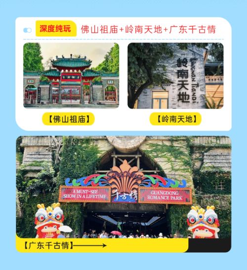 广东千古情+佛山祖庙+岭南天地一日|包车游上门接送+含门票【私家旅行:一单一团,不拼客,专属旅行; 品质服务:5座/7座车上门接送,专职司机护航】