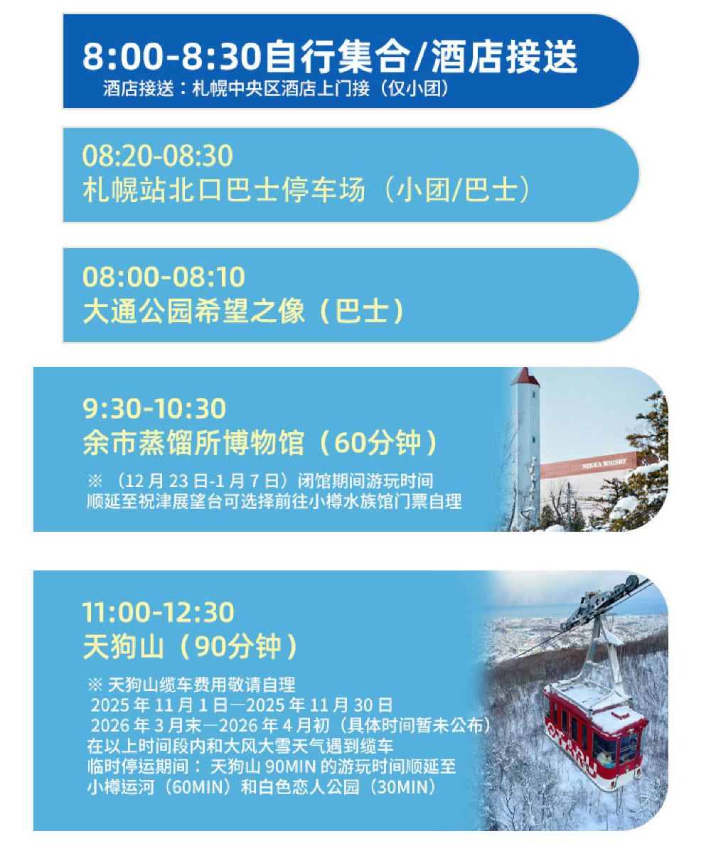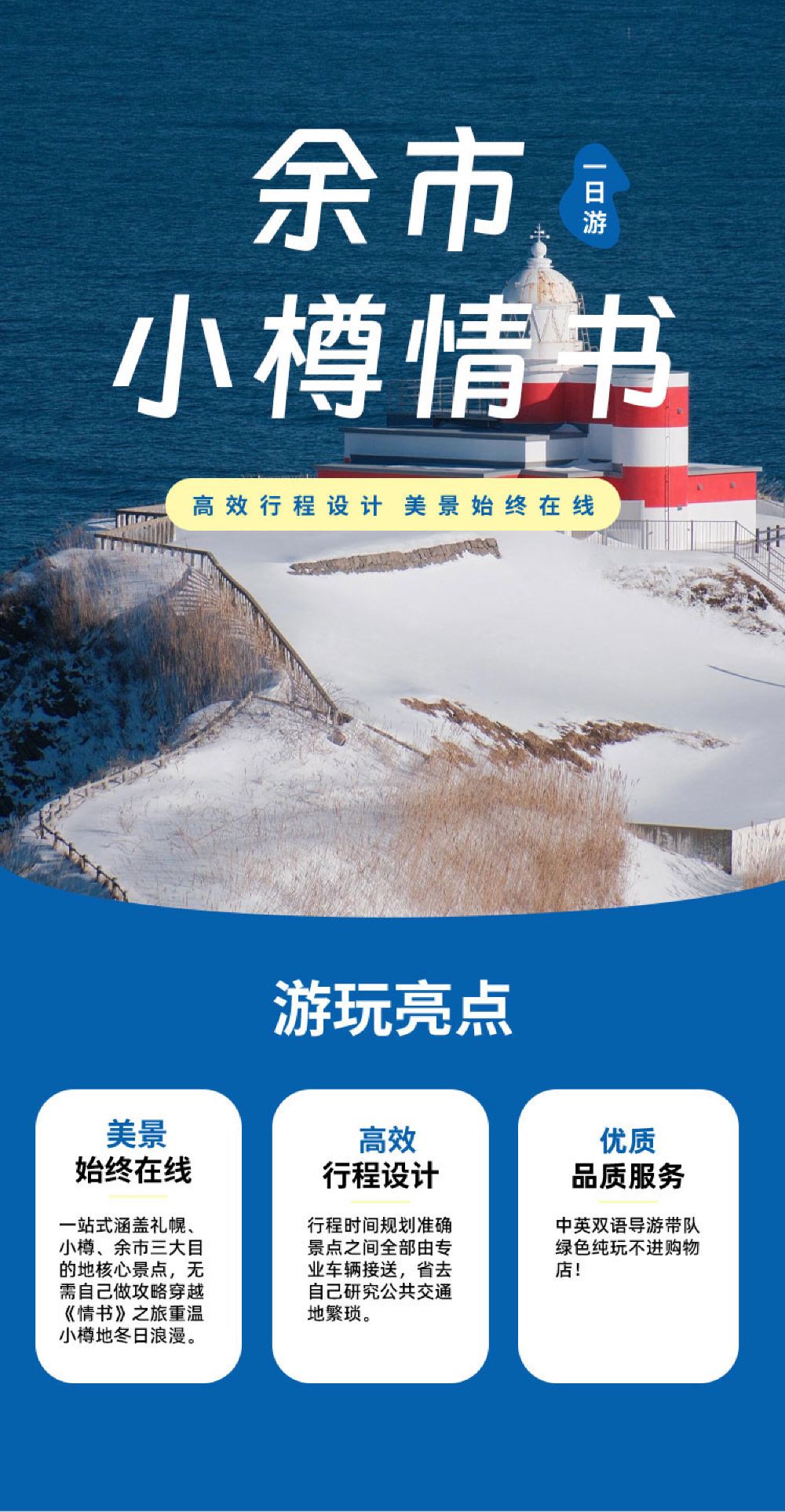 日本北海道白色恋人小樽同款一日游·9人接送/巴士团|天狗山【[情书同款]登顶俯瞰小樽全景,祝津眺望海天一线】
