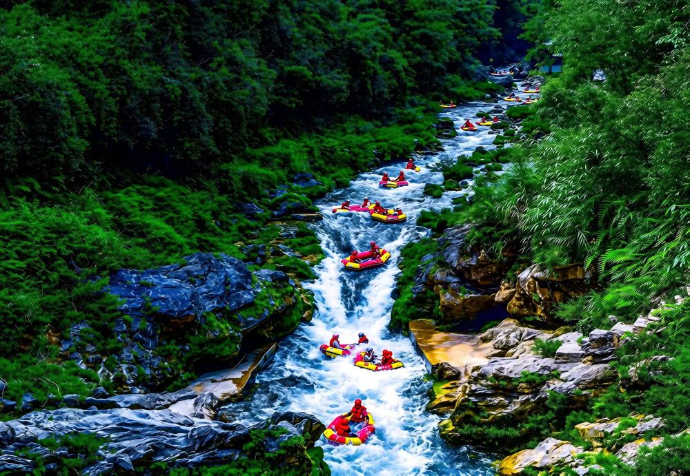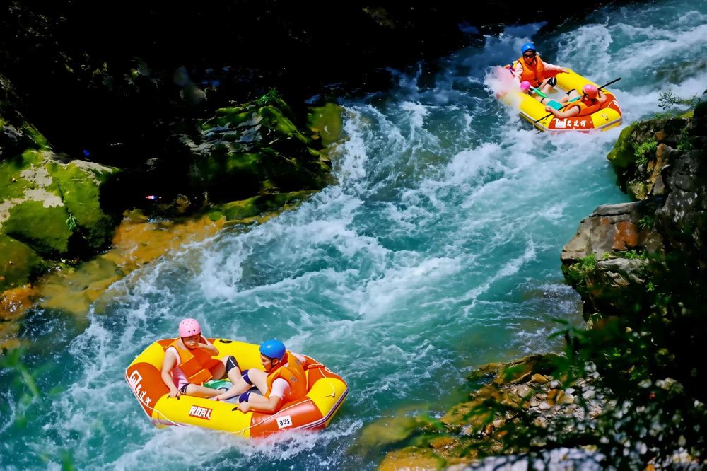 ▲ 挑战“西南第一漂”,在长达10公里、落差200米的天然河道上感受三小时的激流勇进,是勇敢者不容错过的冒险。