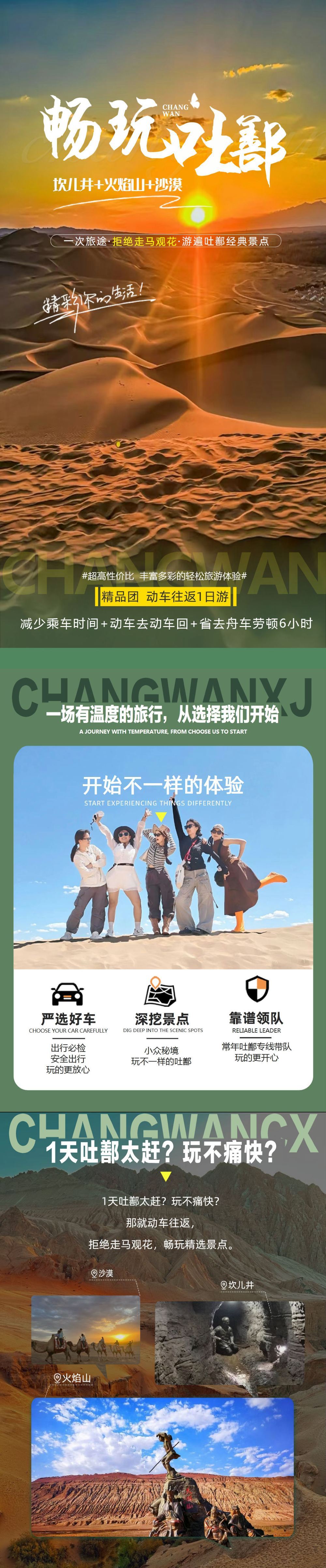 新疆吐鲁番坎儿井+火焰山+库木塔格沙漠一日游赠送特色餐【[郑重承诺]全程导游讲解历史和民俗,边听故事边游览景点,重温古丝绸之路的繁华,管家服务24小时待命。】