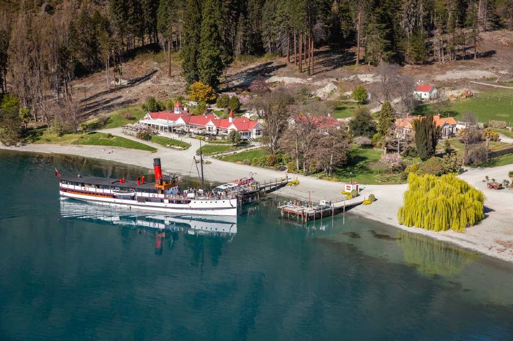 2、行程概述:至皇后镇Real NZ游客中心,Steamer码头登船---巡游瓦卡蒂普湖---参观牧场(可给绵羊和鹿喂食、观赏苏格兰高地牛等)---穿过湖滨花园来到上校之家(Colonel’s Homestead),品尝传统的高地早茶/下午茶---观看剪羊毛秀---登上TSS厄恩斯劳号蒸汽船返回皇后镇