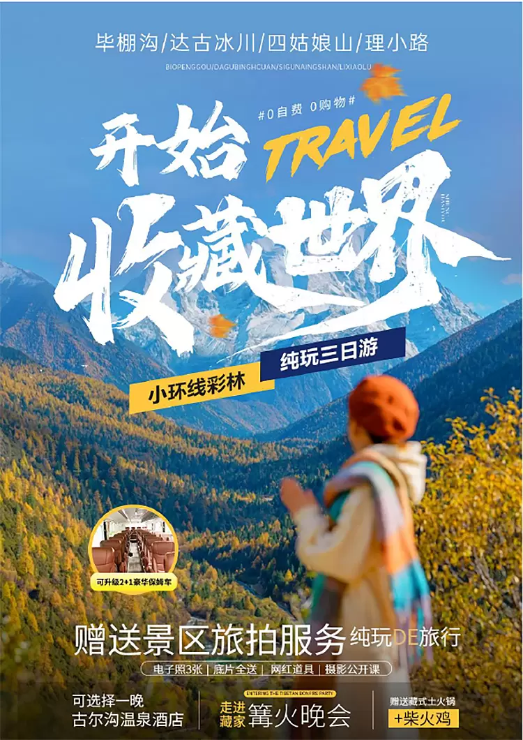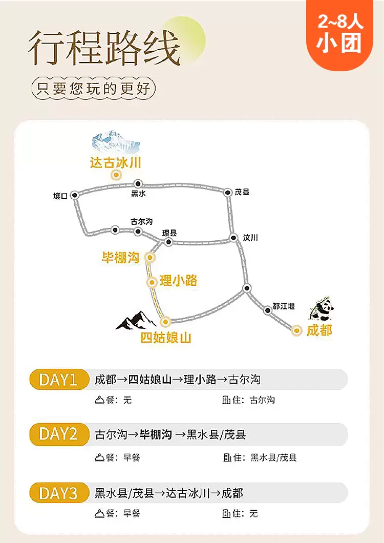 毕棚沟+四姑娘山+达古冰川风景区三日游【可选8人小团保姆车丨玩转川西丨赠送旅拍丨特色美食丨三环内接丨赠送氧气】
