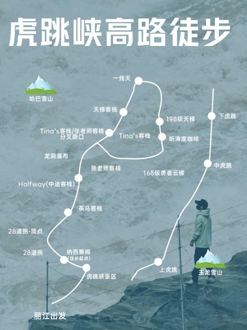 4、行李寄存,大家不必担心行李寄存问题,我们设置了专门的补给点为大家寄存行李,位置在刚进入虎跳峡的地方,补给点可以租借登山杖(用完归还退押金)