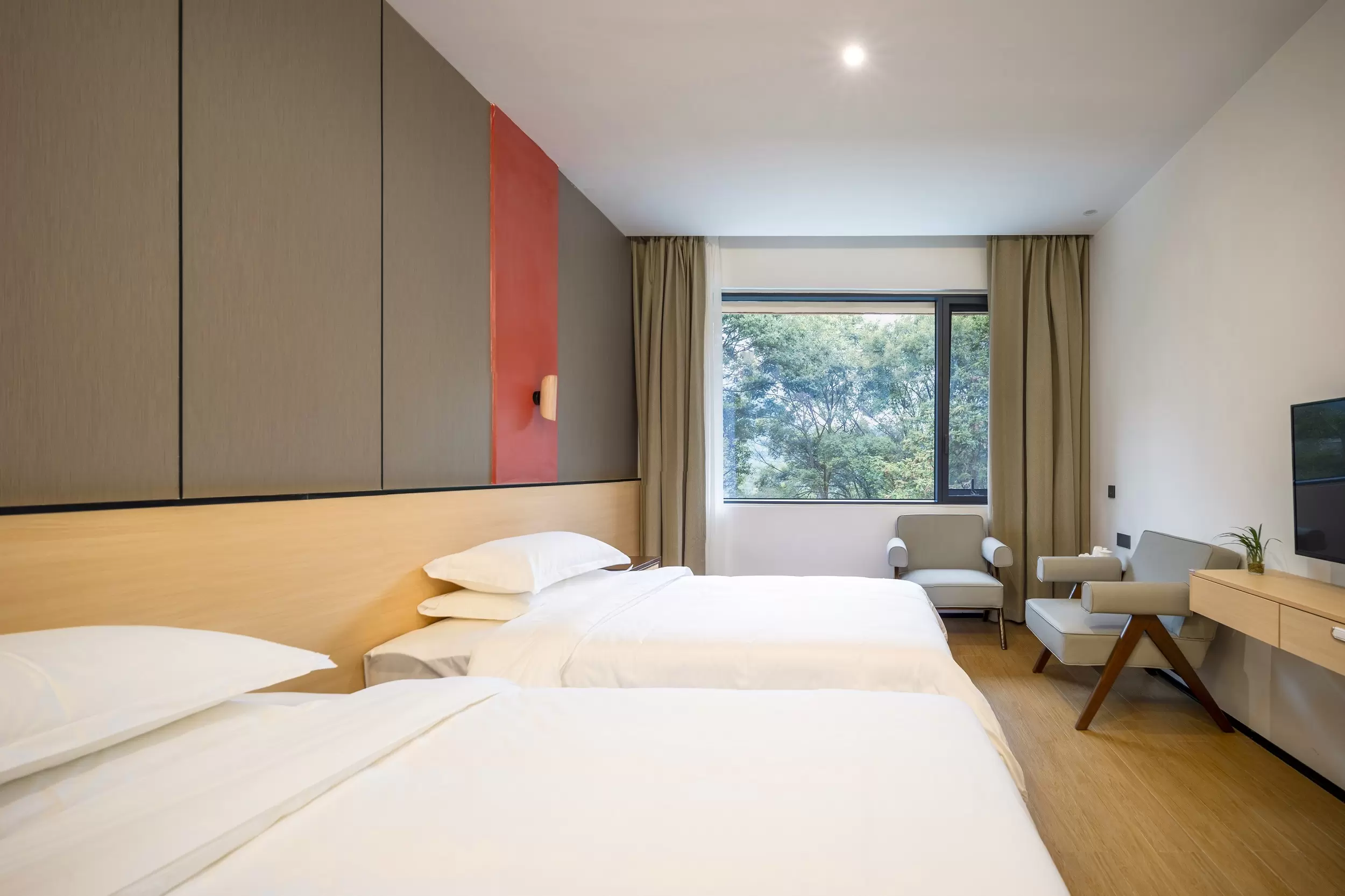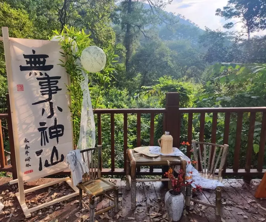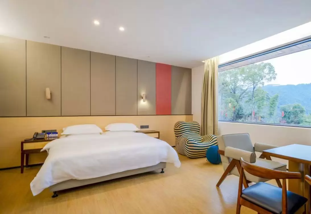 青钱柳度假山庄,占地面积约1500平方米,是一个集餐饮、住宿和会议等多功能为一体的多功能酒店。山庄内共设有49间客房,提供68个床位。装修风格巧妙地将现代元素与森林的自然气息相结合,营造出轻松愉悦的度假氛围。