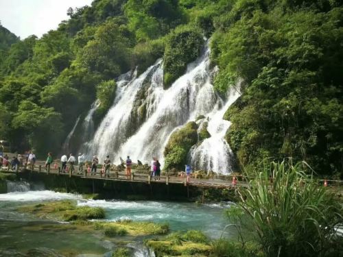 ▲ 七孔古桥是荔波小七孔景区的标志性景点,也是网红打卡胜地 。这座建于清道光年间的石拱桥,横跨在碧绿的响水河上,七孔如弦月倒映碧波,桥身爬满青苔,藤蔓缠绕,充满了古朴的韵味。 清晨时分,晨雾笼罩古桥,阳光穿透林间,光影斑驳,宛如仙境,此时站在桥东头的观景台,可拍摄到古桥与远山、湖面薄雾构成的水墨画卷 。若遇上穿民族服饰的当地人走过,更添一份灵动的仙气。午后光线柔和,桥身被镀上一层金色,适合拍摄人物与古桥的特写,穿上浅色汉服或新中式长裙,能与蓝绿色的湖水形成鲜明对比,出片效果杠杠的。