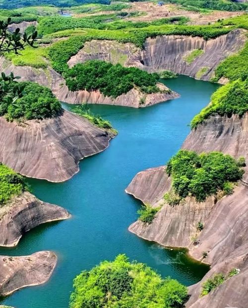 ▲ 高椅岭巨蜥湖以红岩绿水、丹霞地貌和独特地质奇观著称