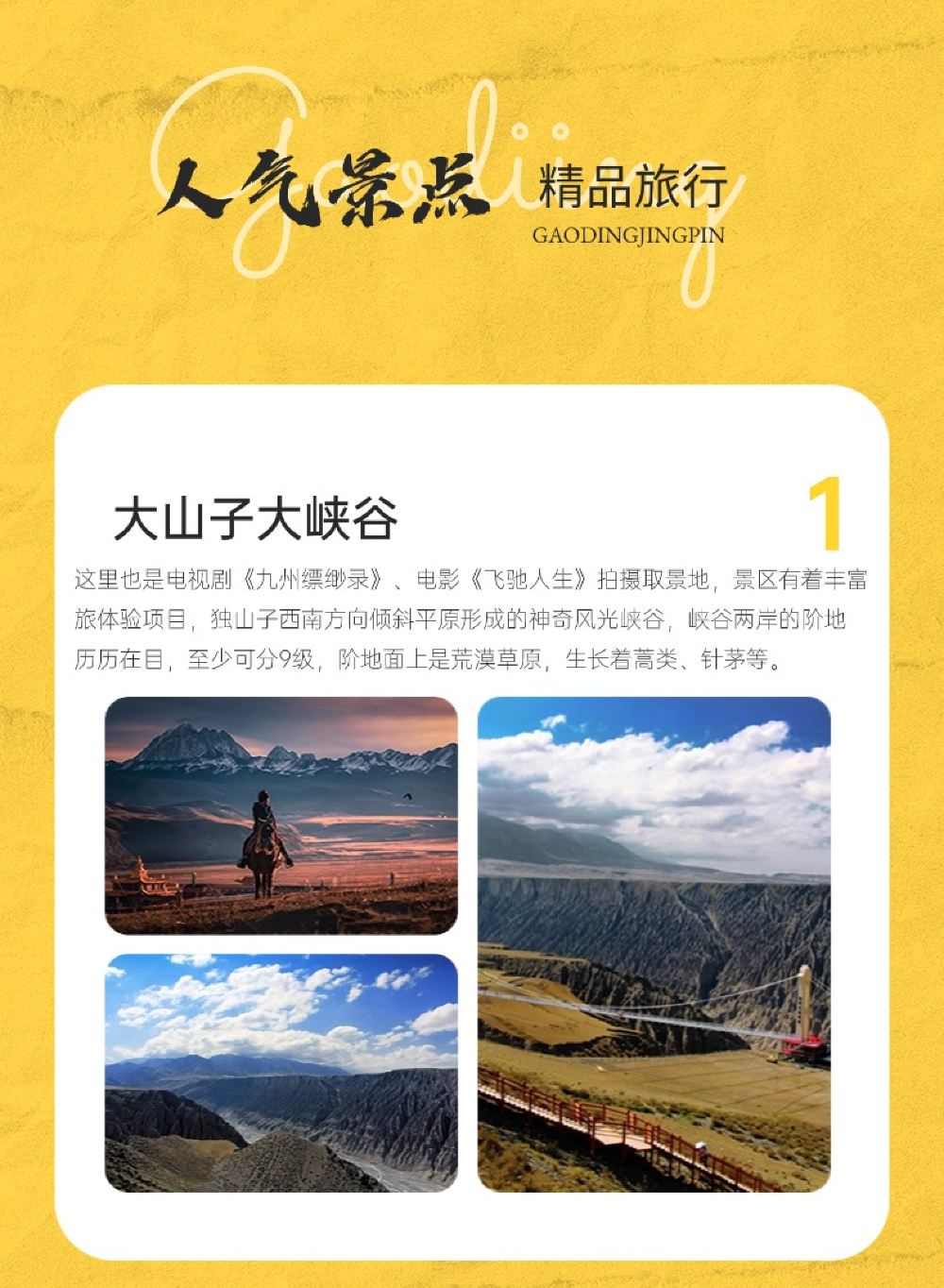 新疆安集海大峡谷/独山子大峡谷/S101线小团一日游【奎屯火车站及市区免费接送,双峡谷全走到,环线不走回头路!】