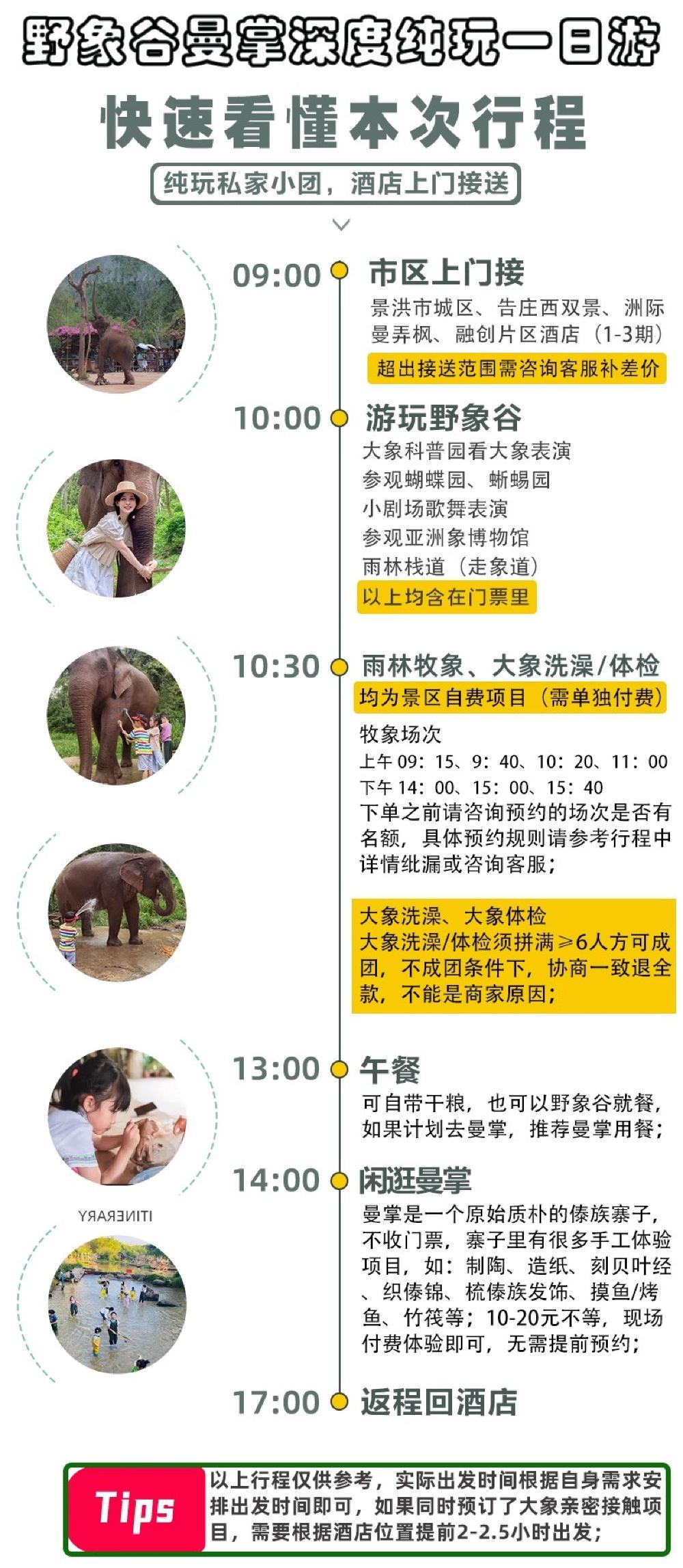 西双版纳野象谷+曼掌村纯玩一日游 可约雨林牧象 大象洗澡 【纯玩团】