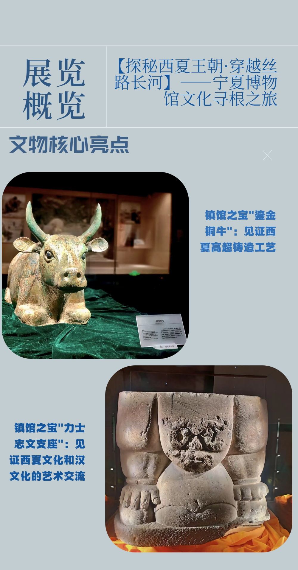 宁夏博物馆大咖精讲【每人配耳麦+预约门票】 半日阅尽通讲通览【宁夏博物馆馆藏丰富,展品跨越了漫长的历史时期。讲解员能够以时间为线索,将宁夏从远古到现代的历史发展】
