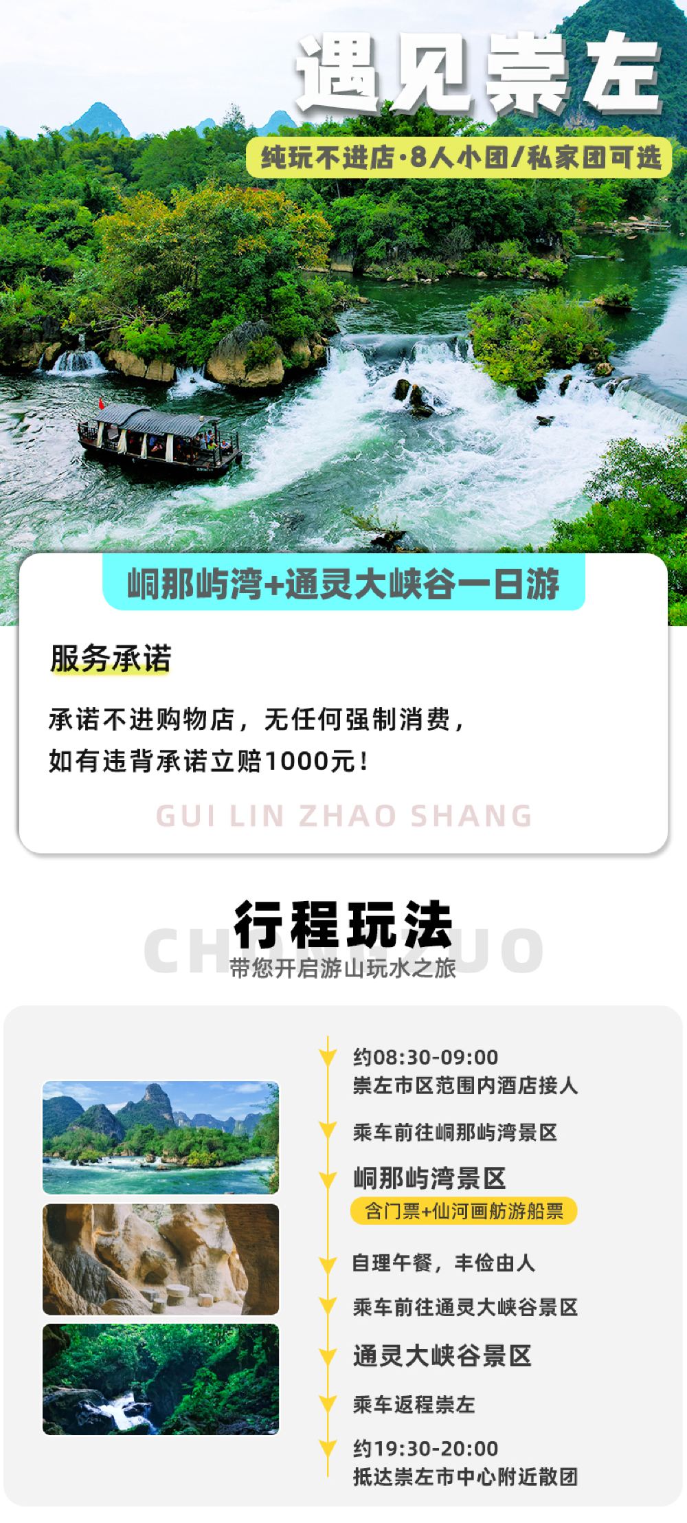 崇左峒那屿湾景区+通灵大峡谷一日游【8人小团/私家团可选】【【用心服务】服务德天专线二十余载,绝无购物店,行程公开、透明、清晰,绝无套路!绝无任何强制性消费!】
