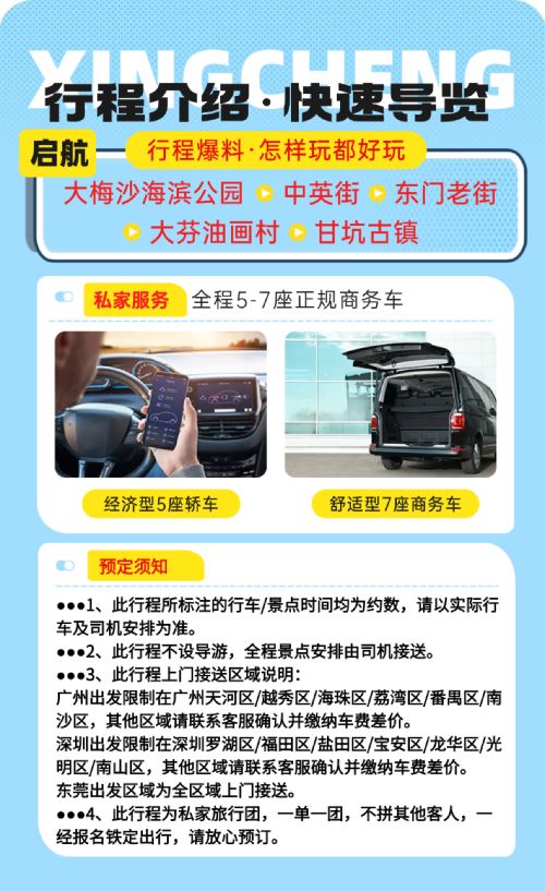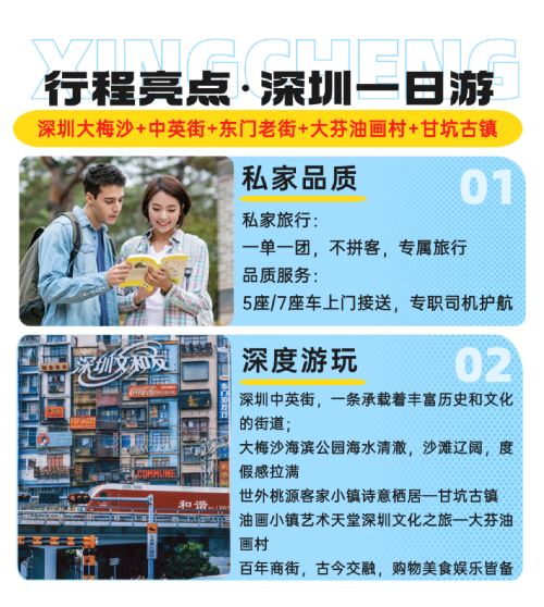 深圳大梅沙+东门老街+油画村+甘坑古镇一日游|私家团上门接送【私家旅行:一单一团,不拼客,专属旅行; 品质服务:车上门接送,专职司机护航】