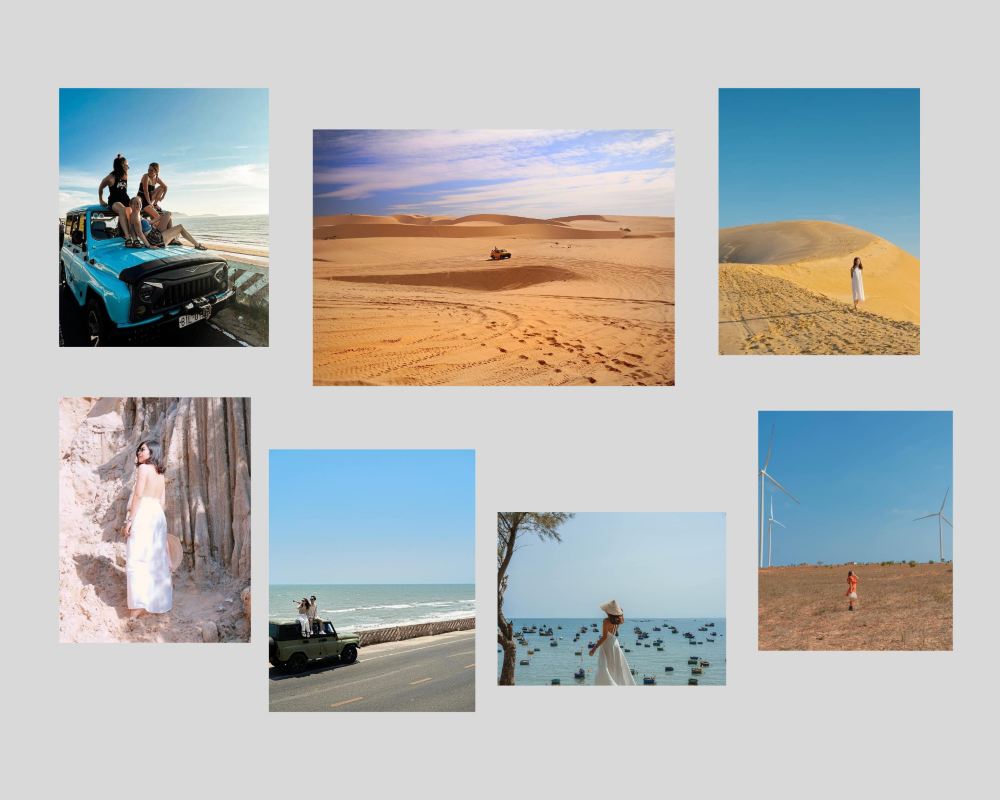 清晨,乘坐吉普车,在美奈 (Mũi Né) 壮丽的沙漠景观中,开启一段激动人心的日出之旅。您的冒险之旅从白沙丘 (White Sand Dunes) 开始,在那里,您将亲眼目睹第一缕阳光照亮无垠的原始沙丘。旅程继续沿着标志性的双子路 (Twin Road) 前行,途中会在壮观的风力涡轮机场 (Wind Turbine Fields) 和令人叹为观止的 Hòn Rơm 海岸公路 (Hòn Rơm Coastal Road) 稍作停留拍照。在红沙丘 (Red Sand Dunes),您可以体验从鲜艳的红色沙坡上滑下的刺激——这能唤醒每个人心中的童真。接下来,探索热闹的美奈渔村 (Mũi Né Fishing Village),渔民们卸下当天的新鲜渔获,五彩缤纷的渔船点缀着海岸线,展现着当地充满活力的生活景象。最后,在仙女溪 (Fairy Stream) 放松身心,赤脚漫步在清凉的浅水中,欣赏红白相间的砂岩奇观。