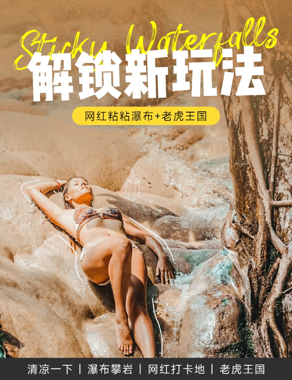 清迈Bua Tong粘粘瀑布半日游 网红瀑布攀岩 亲子优选【亲子友好景点·适合家庭游玩,瀑布底部适合小朋友攀爬,安全又有趣】