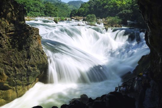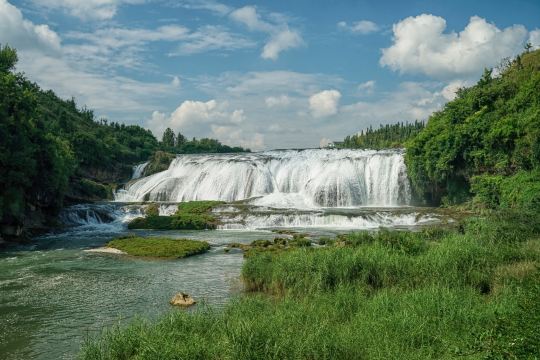12:00-13:00 景区内换乘:换乘景区摆渡车前往大瀑布景区,抵达后,自行在瀑布美食街享用中餐,特别推荐【瀑布土鸡汤】、【瀑布小炸鱼】、【野菜土鸡蛋】等。