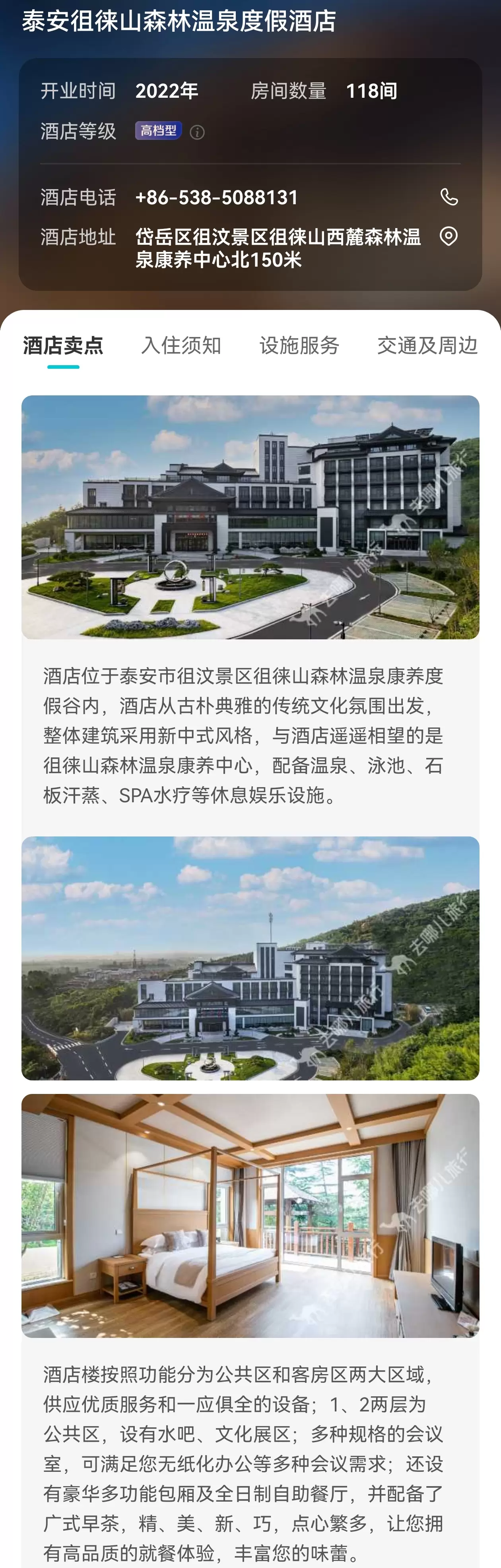 【外地客游泰安专享礼遇】泰安徂徕山森林温泉度假酒店1晚含早+徂徕山滑雪场门票+徂徕山森林温泉康养度假谷门票