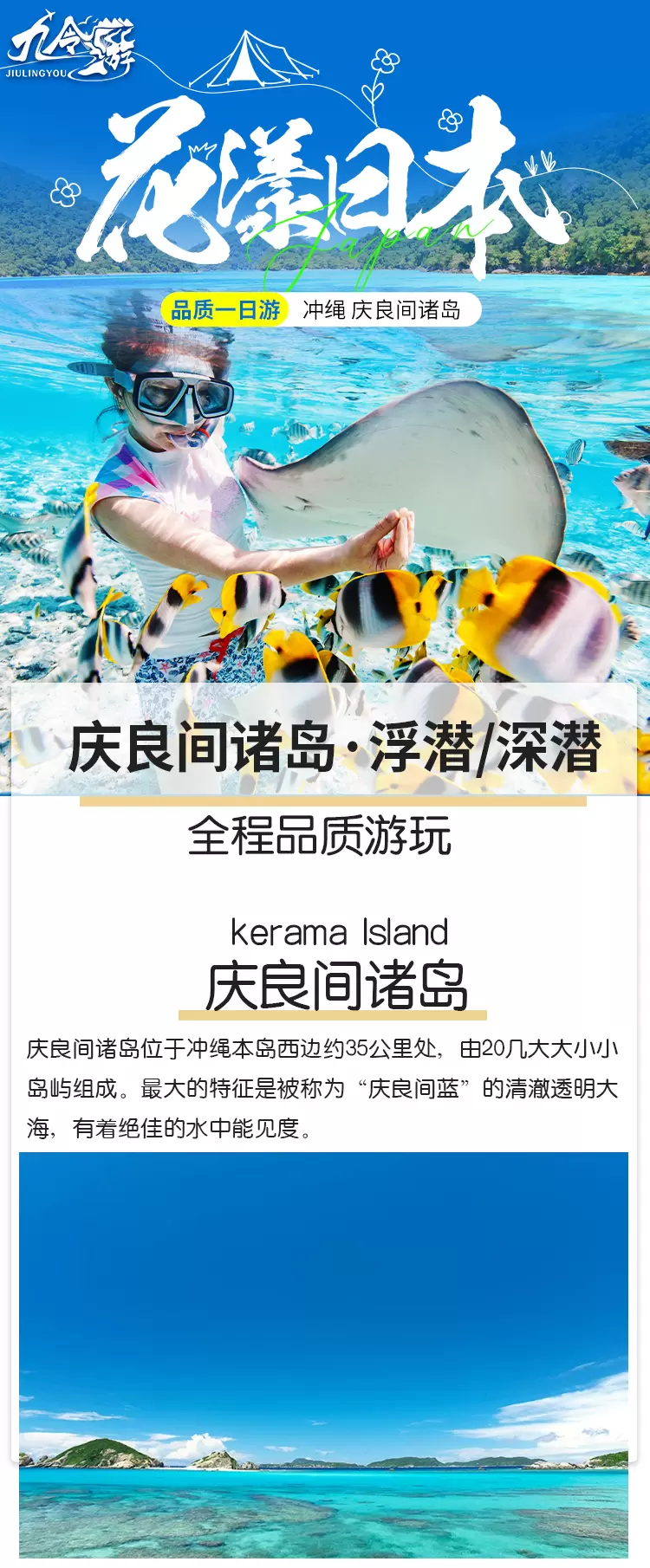 九令游 日本冲绳庆良间诸岛 浮潜体验 与海龟同游+午餐