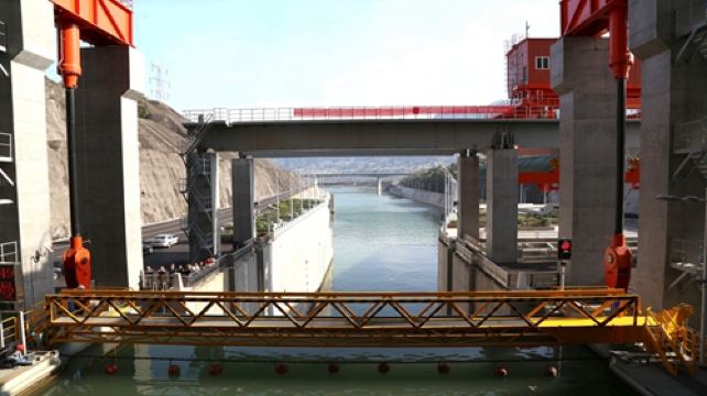 技术较复杂的升船机!它依靠256根直径74mm的钢丝绳让重达1.55万吨的承船厢平均每天升降113米二十余次使过往船舶快速通过三峡大坝