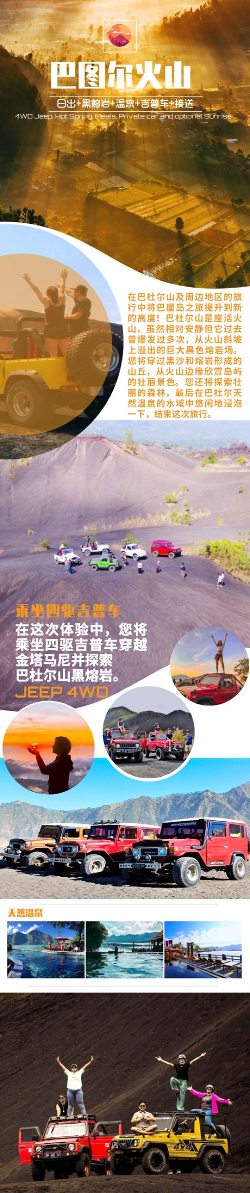 巴杜尔火山【吉普车游黑熔岩|泡温泉|包车 看日出】【参观数百年前就存在的黑熔岩区火山氛围】