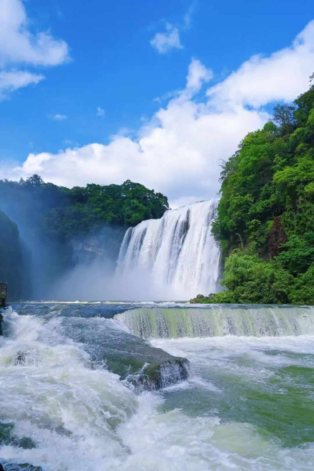 ▲ 黄果树瀑布,亚洲第一大瀑布,是一生不能错过的自然奇观。77.8米高的巨瀑如银河倾泻,轰鸣声震彻山谷,水雾中常现彩虹,美若仙境。穿过134米的天然水帘洞,伸手触摸飞瀑激流,仿佛走进《西游记》的奇幻世界。陡坡塘瀑布是86版《西游记》片尾取景地,宽达105米,水流如层层白纱铺展。天星桥景区的银链坠潭瀑布,如万千银链坠入深潭,令人叹为观止。此外,还可夜游黄果树,看3D激光将瀑布染成流动的银河,感受独特的视听盛宴。