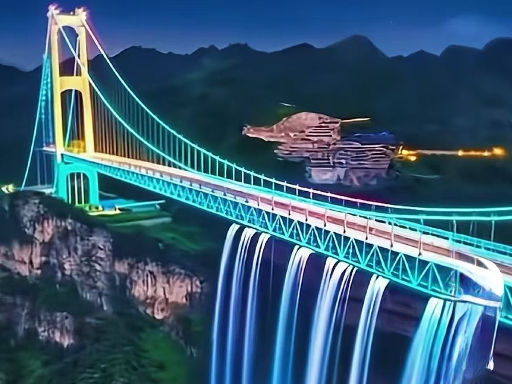 ▲ 花江峡谷特大桥是位于贵州安顺与黔西南交界处、横跨花江大峡谷的超级工程,为六安高速控制性工程 。其全长2890米,主桥跨径1420米、桥面距水面垂直高度625米,创下“山区桥梁跨径世界第一”“桥梁高度世界第一”的双重纪录,被誉为“横竖都是第一” 。 作为集技术突破与功能融合于一体的大国工程,它采用智能缆吊系统等先进技术,获21项授权专利,为全球山区桥梁建设提供“中国方案” 。通车后将两岸2小时车程缩短至2分钟,更打造了含观光电梯、玻璃廊道、高空蹦极的桥旅综合体,联动周边景区形成旅游圈,成为新地标。