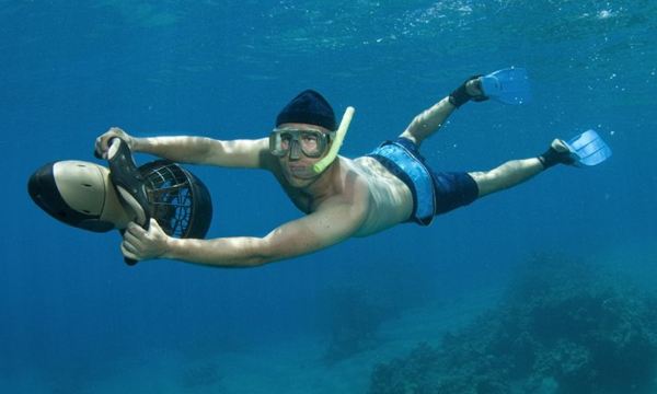 ▲ 一位游客正在享受电动潜水助推器的浮潜体验,轻松在水下滑行,探索珊瑚礁和海洋生物。电动潜水助推器让移动更加流畅省力,使浮潜变得简单有趣,适合所有技能水平的游客。