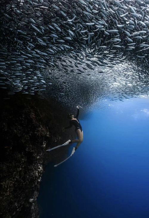 ▲亲眼目睹数百万条沙丁鱼同步回旋的壮观景象,无论浮潜还是深潜,都能享受这令人窒息的美景