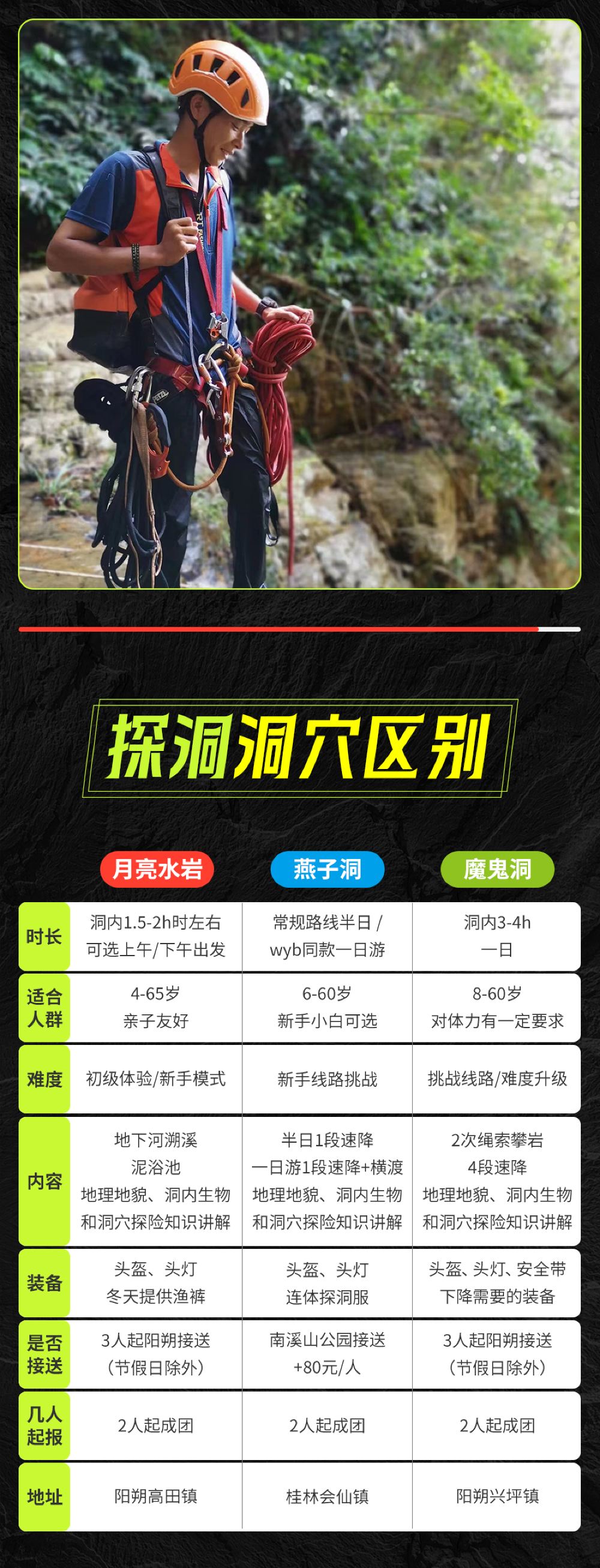 桂林阳朔探洞一日游 月亮水岩燕子洞魔鬼洞