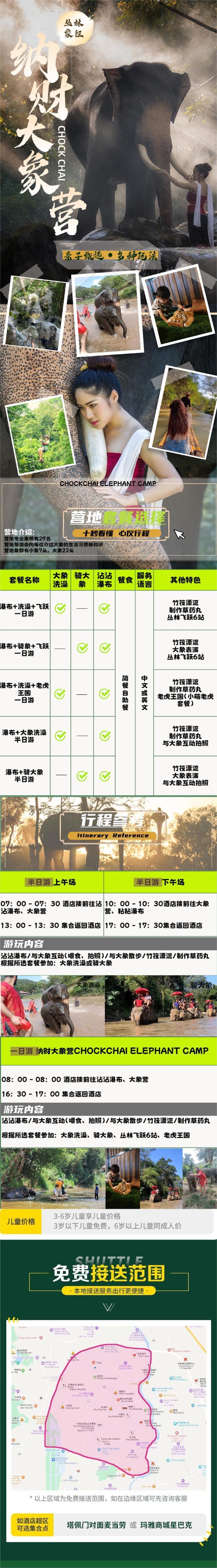 纳财大象营一日游【黏黏瀑布+大象洗澡+竹筏漂流半日游】【上门接送】