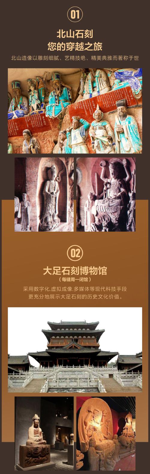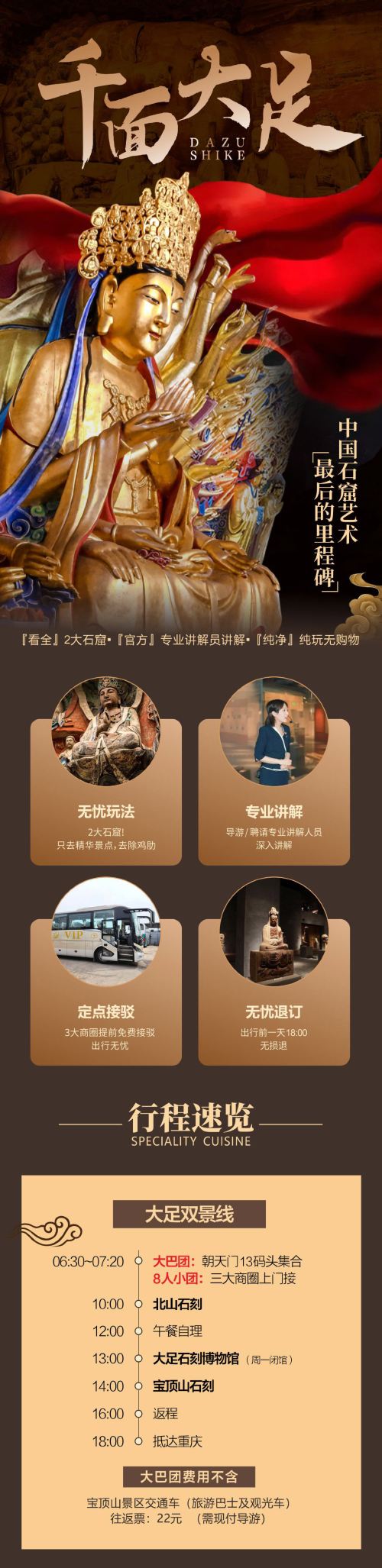 宝顶山石刻+北山石刻+大足石刻博物馆一日游【纯玩丨亲子游】【[深度体验]大足石刻3分看7分听,专线专职导游,佩戴耳麦深度讲解!】
