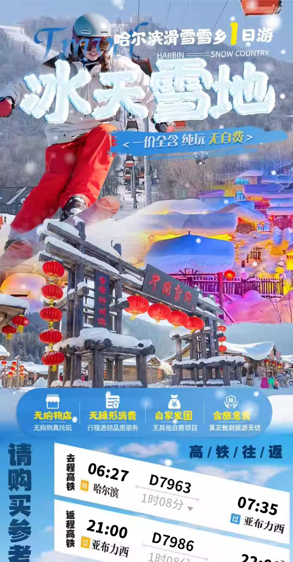 来时购买班次:D7963次动车哈尔滨站发车时间06:27分 到达亚布力西站07:35分