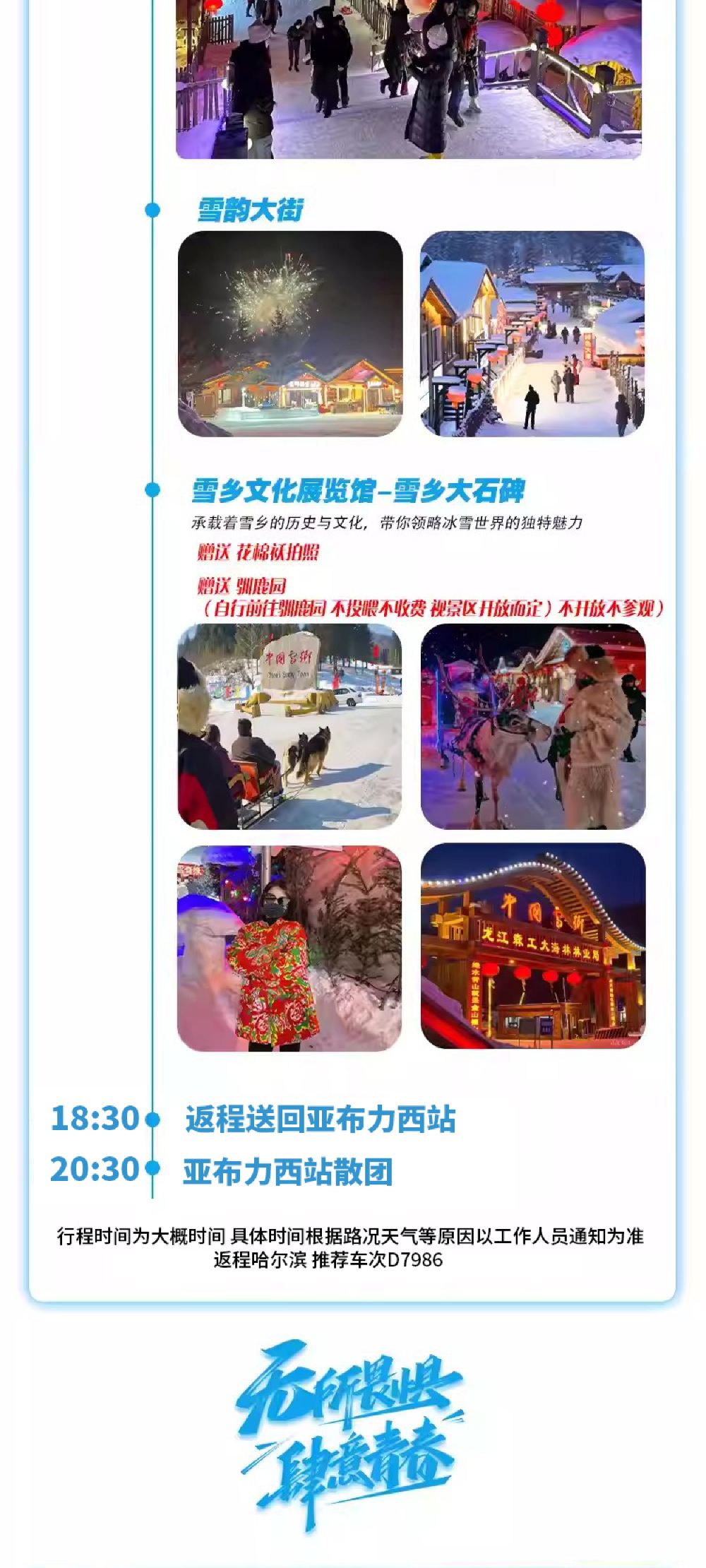 雪乡返程时间18.30分到达亚布力西站20点30分散团