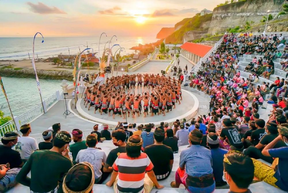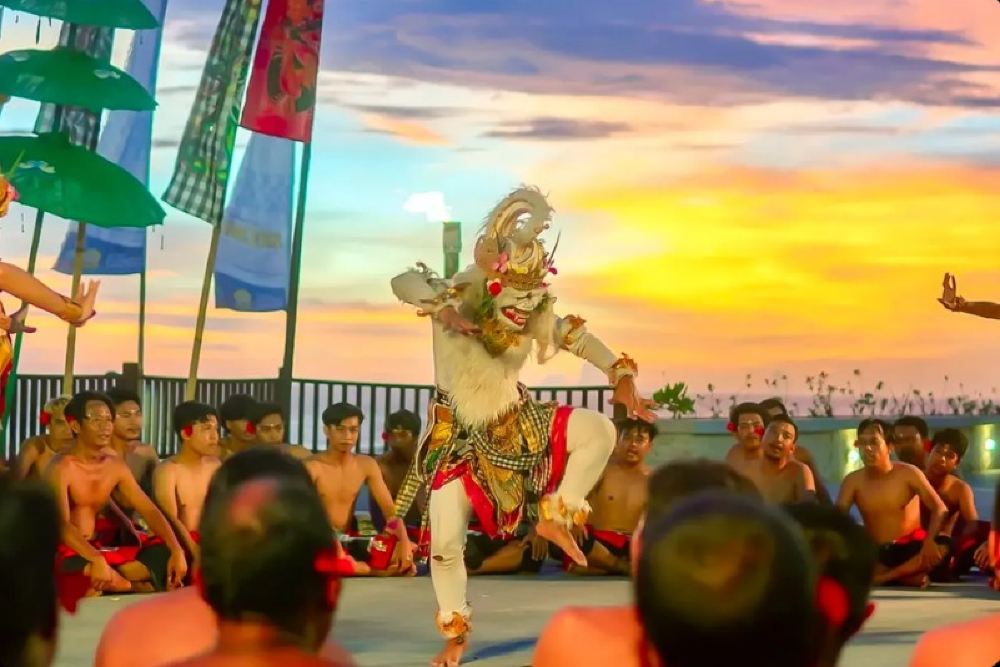 ▲ 在美乐思海滩观看令人着迷的凯卡克舞与火舞,强劲的歌声、令人惊叹的日落美景和巴厘岛文化交织在一起,带来一场令人难忘的表演