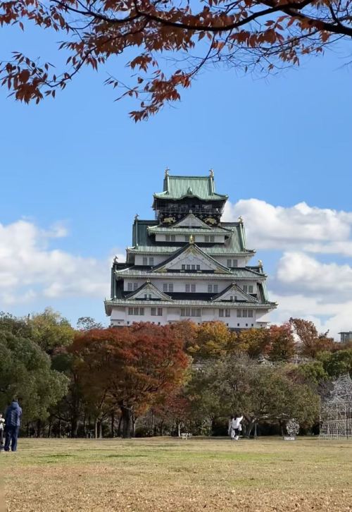 ▲ 战国历史氛围浓厚,天守阁俯瞰大阪,樱花季景色很美