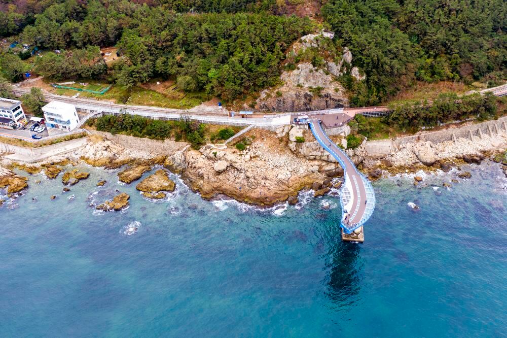 ▲ 4)青沙浦天空步道:从展望台眺望壮丽的韩国东海的地平线。