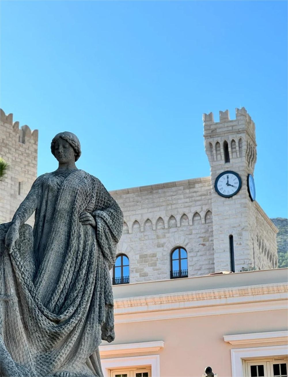 ▲ 蓝天如洗,一尊石像优雅伫立,衣褶间似藏着往昔传奇。不远处,王子宫殿的石砌钟楼古朴而庄重,时钟静静转动,见证岁月更迭。宫殿的砖石纹理,镌刻着历史的厚重,在日光下散发着法式典雅韵味,诉说着一段段尘封的王室故事。