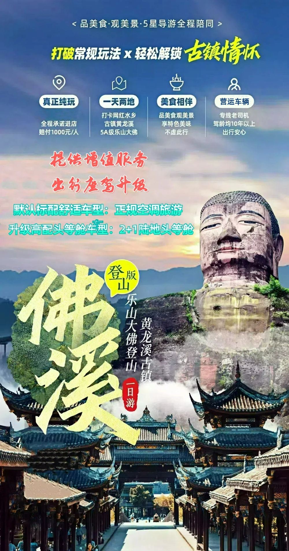 乐山大佛+嘉定坊+黄龙溪一日游【世界自然与文化遗产地乐山大佛、中国天府第一 名镇黄龙溪古镇】