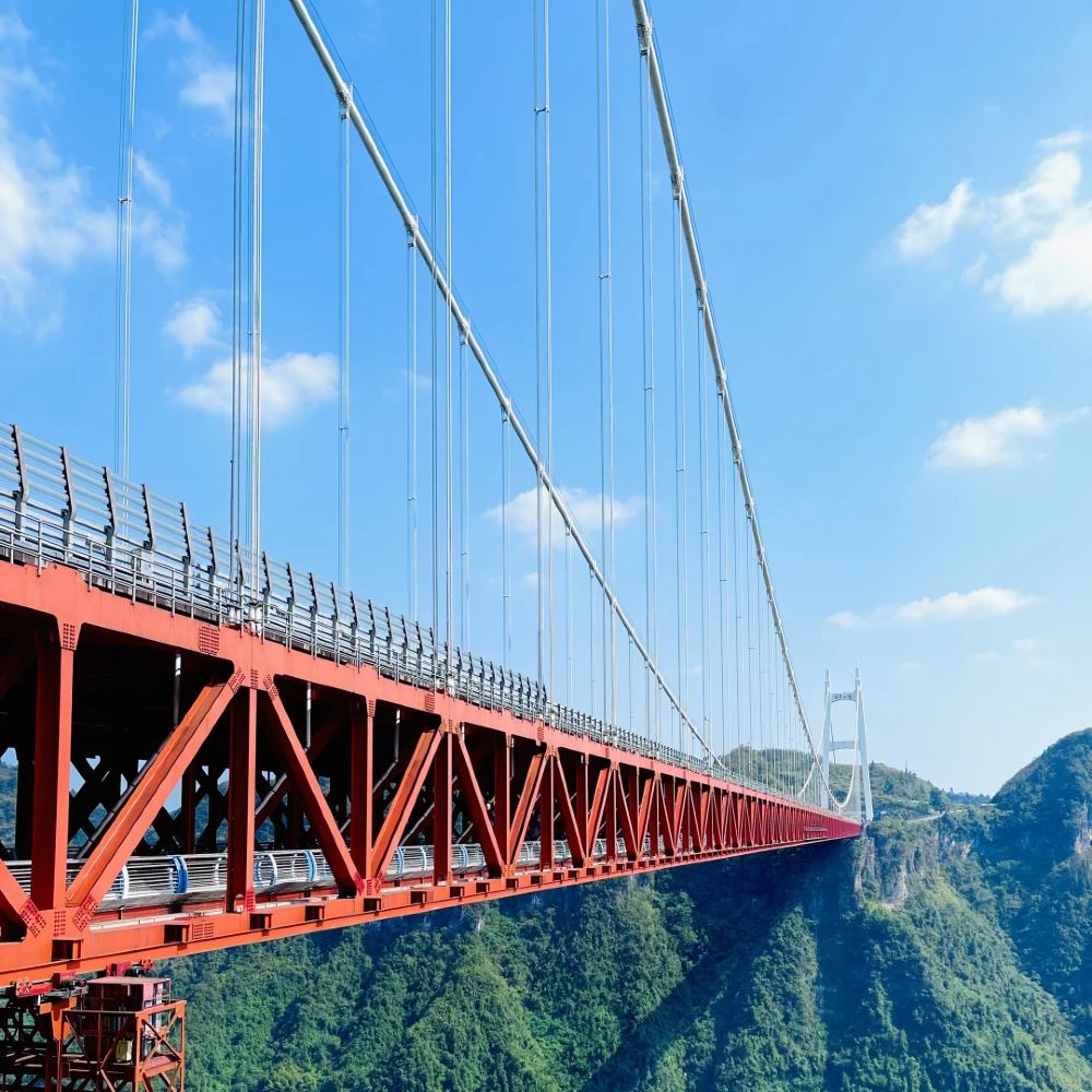 ▲ 矮寨大桥,横跨德夯大峡谷的千米悬索桥,创下四项世界第一。它不仅是交通枢纽,更是壮丽景观台,云雾中宛如天际彩虹,是湘西必打卡的地标奇迹。