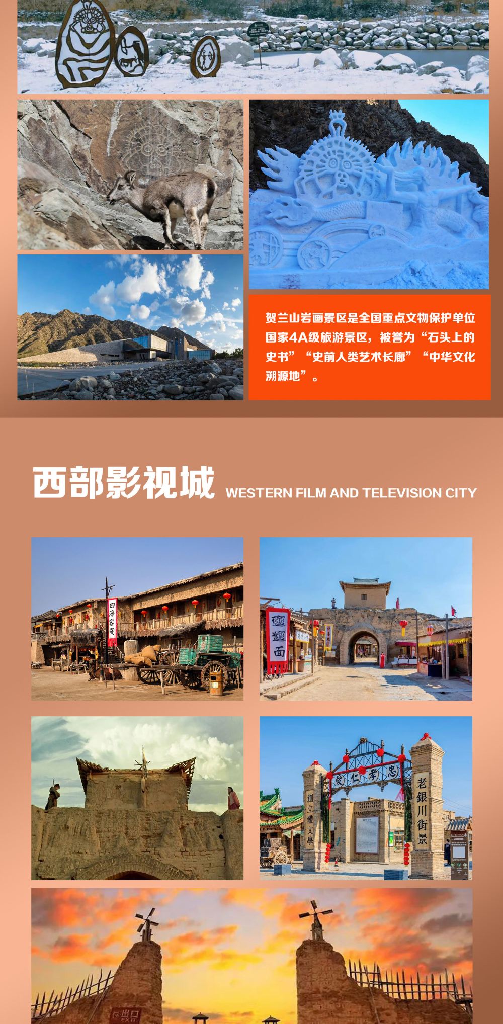 宁夏银川镇北堡西部影城+贺兰山岩画+西夏陵一日游【私家团】【镇北堡影视城重现《大话西游》至尊宝紫霞守护 誓言穿越月亮门牛魔王宫银川老街戈壁奇迹变艺 术瑰宝】