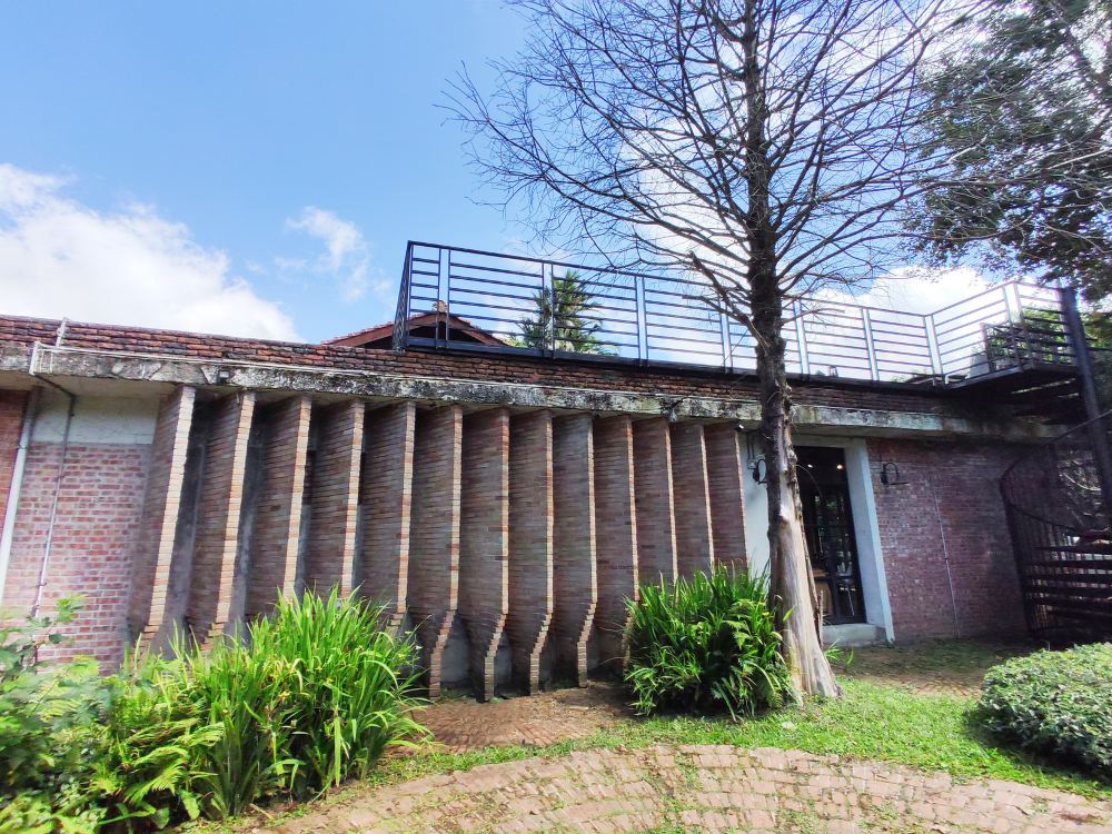 - 餐厅户外花园区的红砖弱风墙,底部的弧度砌砖技巧只有在这里看得到
