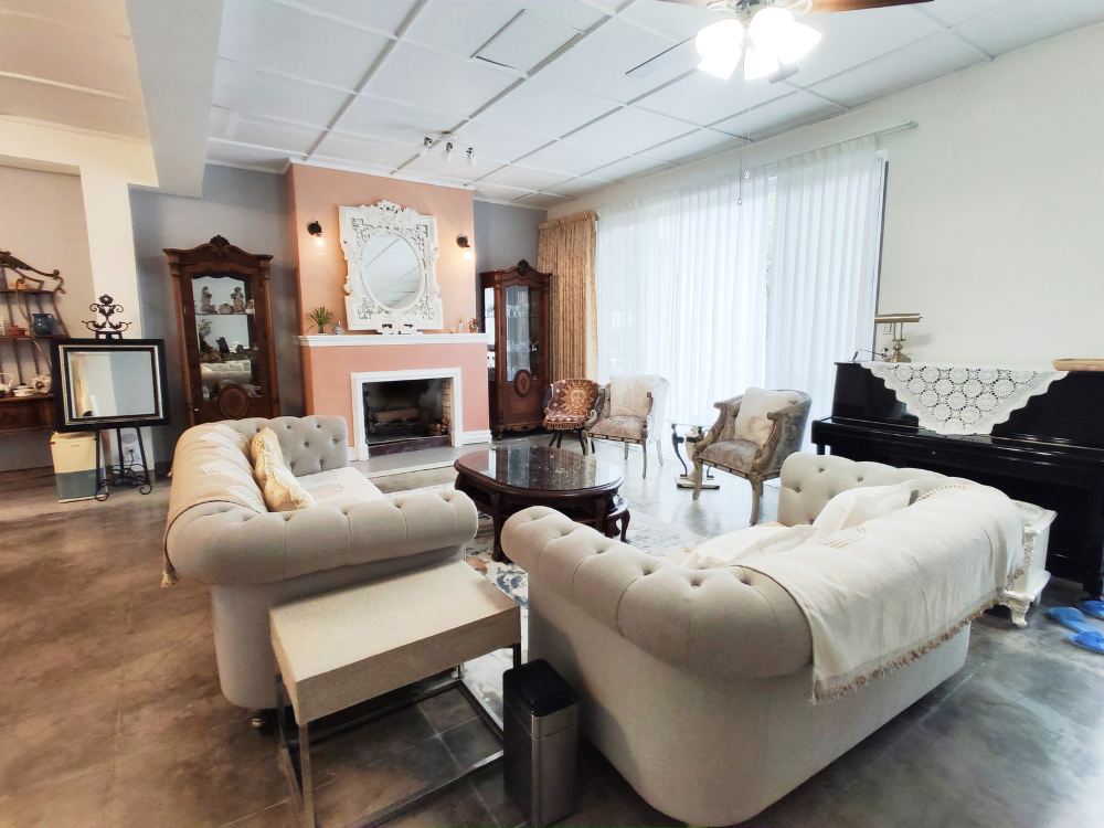 - 特色的天花板结构、美国住家固有的壁炉、大量的玻璃窗与采光