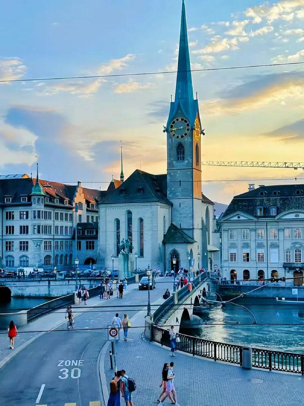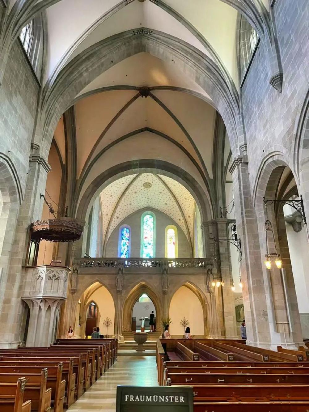 ▲ 苏黎世大教堂: 建造时间:始建于1100年左右。 核心特征:罗曼式双塔(高98米)、青铜门浮雕、贾科梅蒂彩绘玻璃。 功能定位:宗教改革发源地,现存地下圣堂壁画可追溯至12世纪。