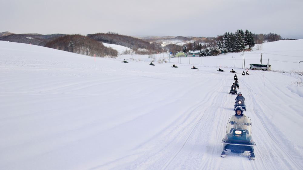 ▲ 北海道的雪地摩托体验常在冬季开放,游客能在辽阔雪原中驰骋,感受速度与冰雪的结合。