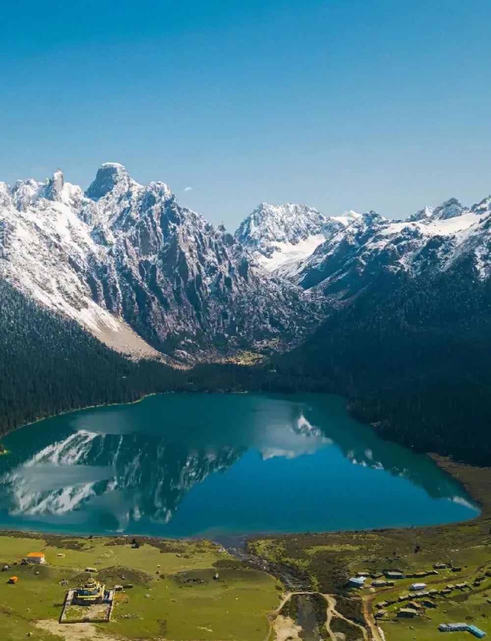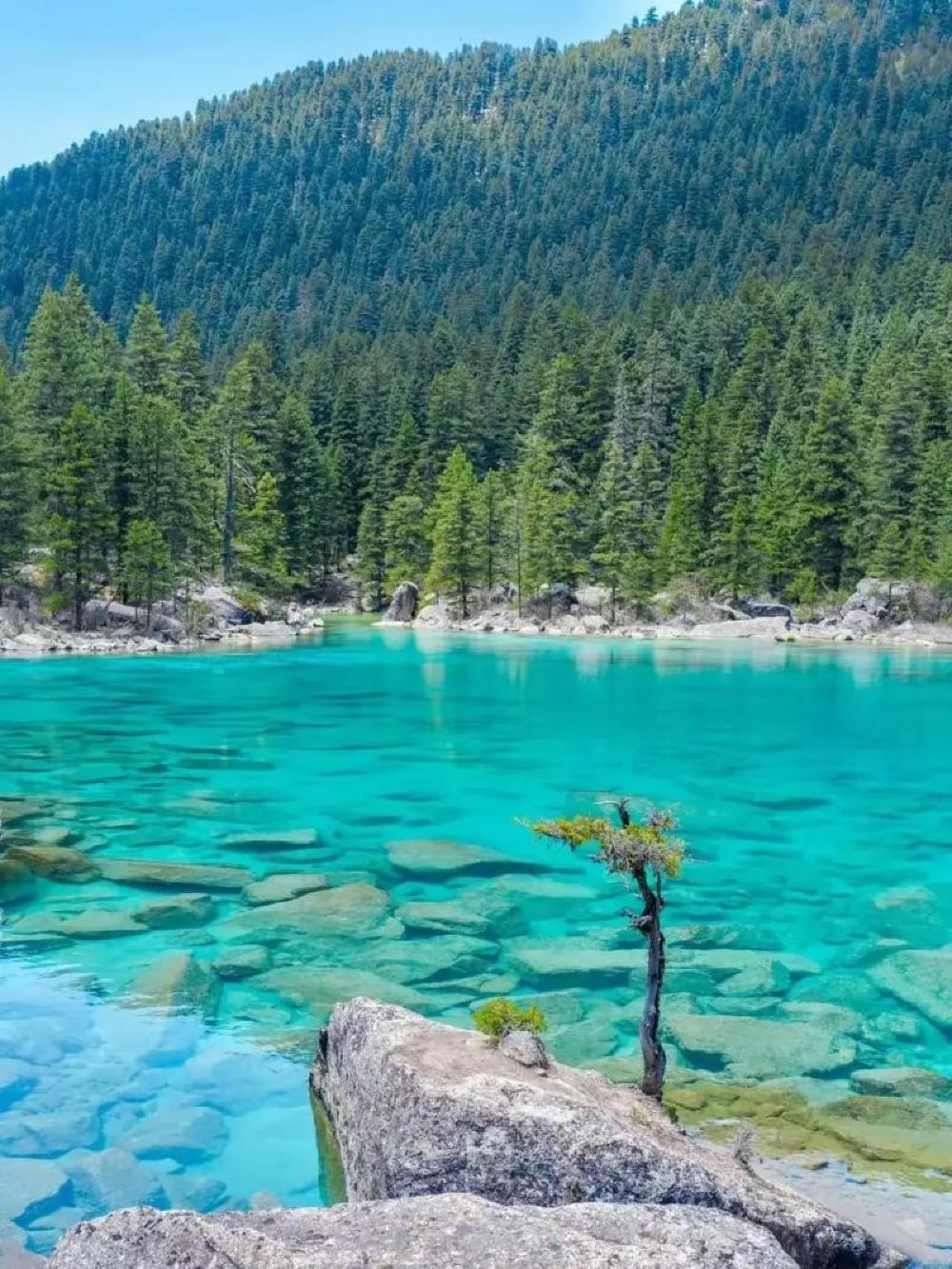 ▲ 措普湖康巴圣湖,典型的冰川湖泊,湖水湛蓝,周围森林茂密